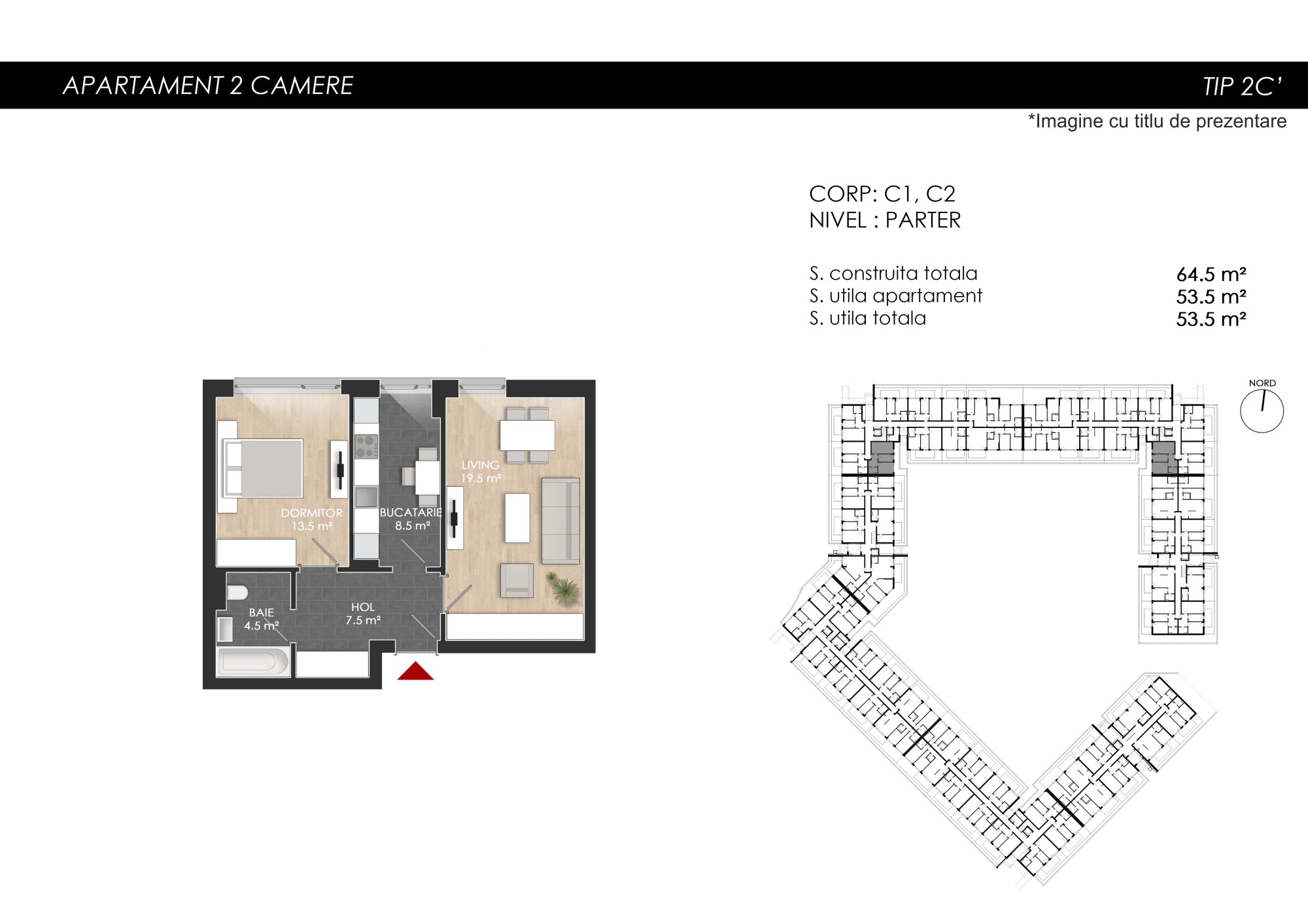 Apartament 2 camere tip 2C’| Parter | Corp C1, C2 | Faza 3